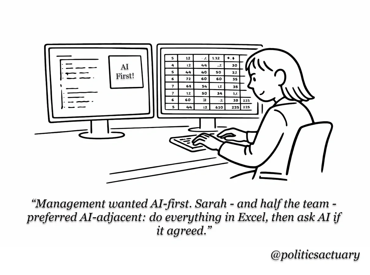 The Politics Actuary #7 — from the AI & the Actuary theme. Management wanted AI-first. Not everyone got the memo.